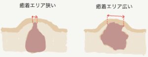 癒着しているエリアが小さければ、くり抜き法で対応出来ます。しかし、エリアが大きい場合には、切開法でしっかり切り取る必要性があります。