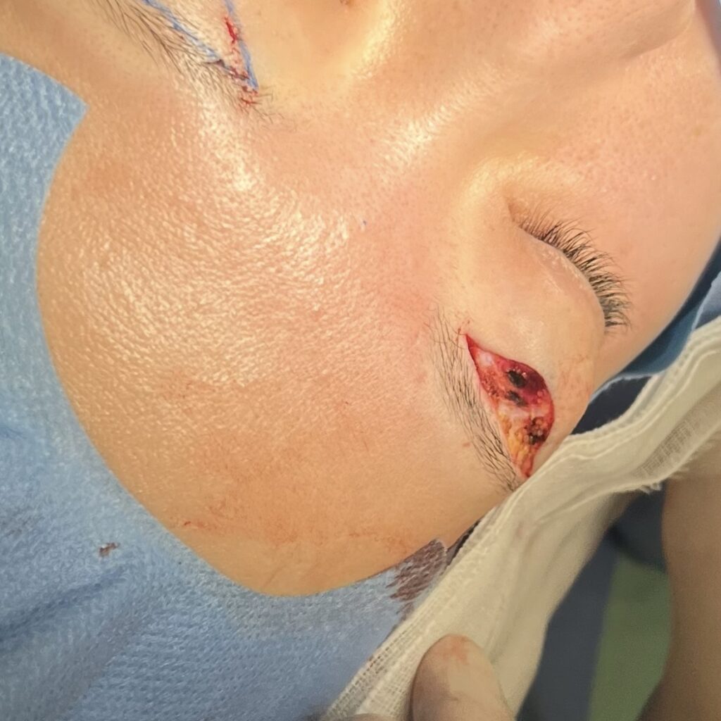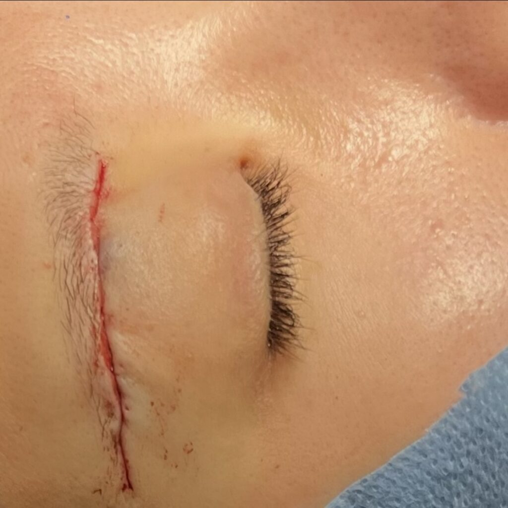 眉毛付近の皮膚は、浮腫が早く引き、キズアトも目立ちにくいです。最終的には赤味や肥厚は改善しますが、眉毛が薄いほど、隠しにくい印象はあります