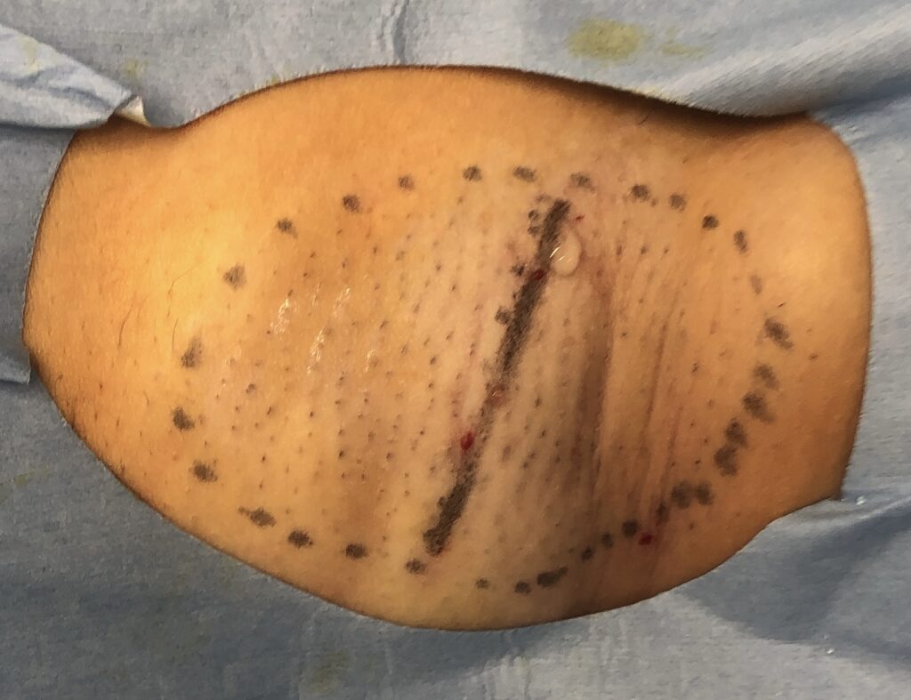次に、手術中の写真で解説します。特に注目したい画像は、汗腺除去した後は、白い真皮がはっきりと確認できている点です。