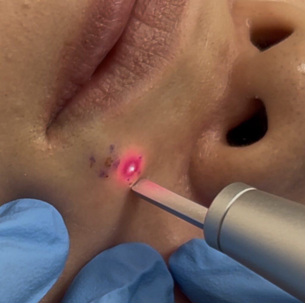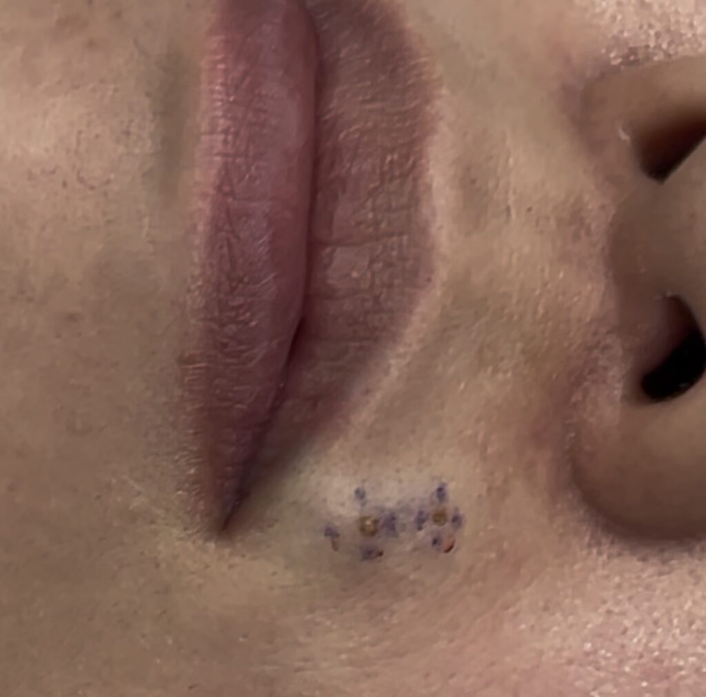 局所麻酔後に、ラジオ派メスにて除去。2,3か月間は淡い紅斑のイメージです。ここから徐々に馴染んでいきます。その際UVケアや摩擦などの刺激を避けていただくと、より傷跡はきれいになります。