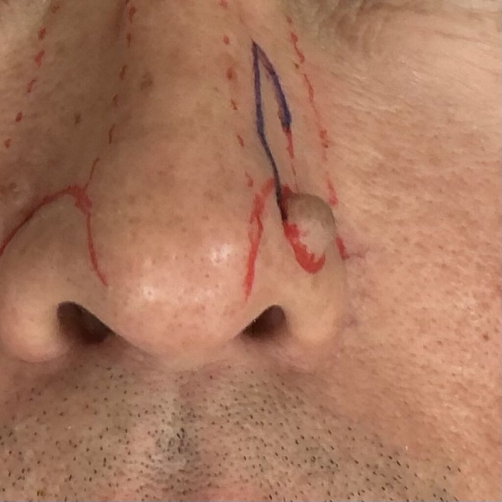 1.鼻翼部に良性腫瘍あり