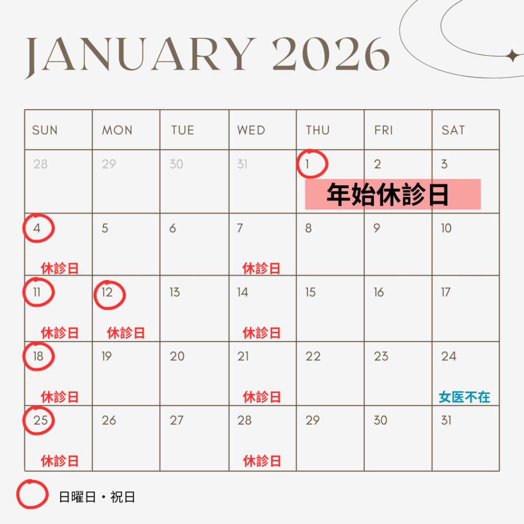 2025年に開院して以来、たくさんの方にご来院いただきありがとうございました。2026年も、皆様にとって、通いやすい、ご相談しやすいクリニックを目指して精進して参ります。皆様にとって良い一年になりますようお祈り申し上げます。