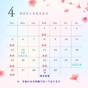 4月29日は手術のみ完全予約制で実施しております。