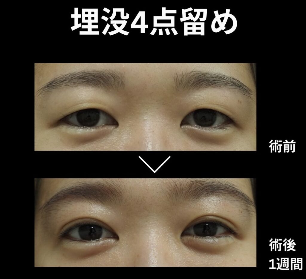 左右差、むくみ、内出血、糸玉露出、感染、など